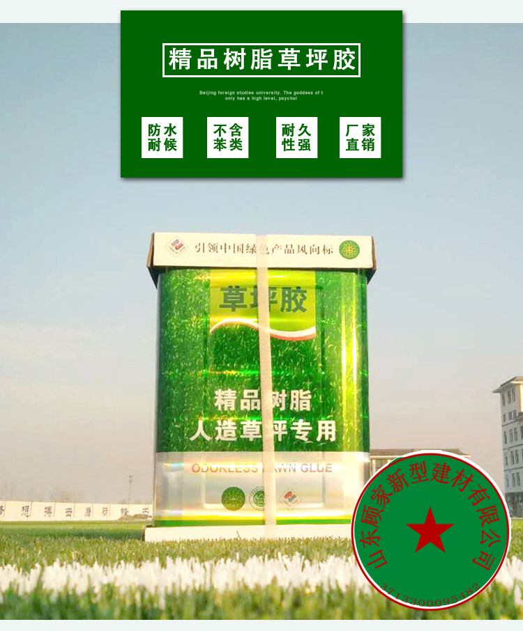 顾家草坪胶产品性能优异,施工方便,粘接力强,剥离强度高。联系电话:15588022228,抗紫外线,防水、抗水解性能优,不含甲苯、二甲苯、甲苯二异氰酸酯和重金属,人工草坪专用胶,人造草皮专用胶,人造草坪胶,草坪专用胶,人造草坪专用胶水,草坪专用胶水经国家工程复合材料产品质量监督检验中心检测符合国家标准。